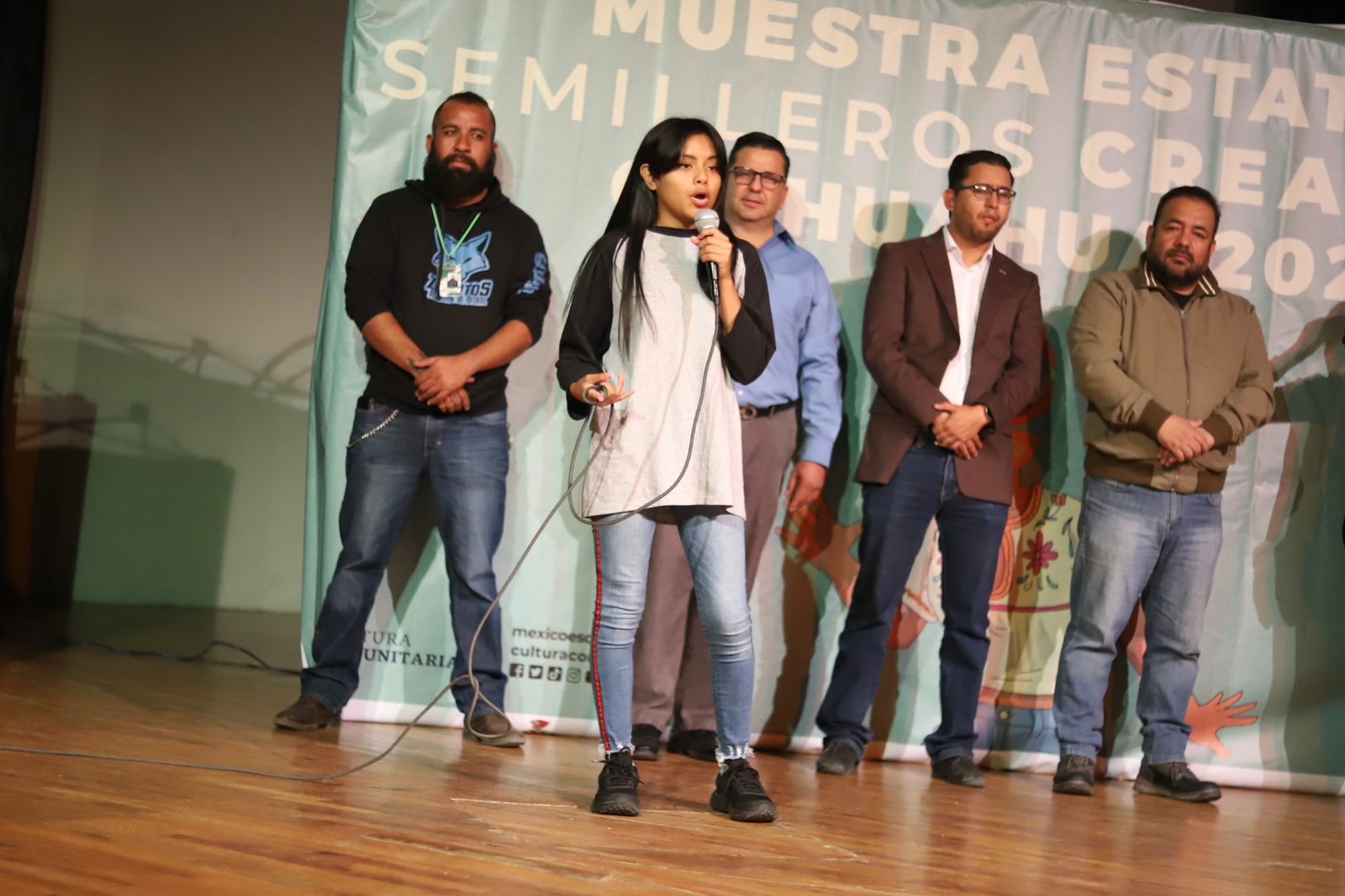 Con la presencia de estudiantes de escuelas primarias y la presentación de diferentes ejemplos de arte, se llevó a cabo la Muestra Estatal de Semilleros Creativos Chihuahua 2023 en el teatro “Ernesto Ochoa Guillemard”.Alumnos de la Escuela Primaria “Nicolás Bravo” y la Escuela Primaria 18 de Julio, disfrutaron, como parte del programa, la obra de teatro “Girasoles al lado del bordo”, además de una muestra de videos y pinturas en grabado que fueron creadas por otros menores que forman parte del grupo Semilleros en el Estado de Chihuahua.“Semilleros Creativos son principalmente grupos de convivencia con personas más o menos de nuestra edad, en donde aprendes sobre una disciplina artística como puede ser artes visuales, teatro, música y también, como en nuestro caso, aprendimos a hacer radio y producciones radiofónicas”, detalló el estudiante Edwin Rodríguez González, de Semilleros de la ciudad de Cuauhtémoc.La señorita Fernanda Pineda Sauceda, quien también forma parte de este grupo, detalló que formar parte de Semilleros le ha permitido desarrollar habilidades de comunicación, ya que antes era introvertida y ahora no teme el hacer una demostración en público o hablar de cualquier tema.Julio Alberto Soto García, director de Enlace Comunitario y Asistencia Social de la Dirección de Desarrollo Social, destacó que el Presidente Municipal, Cruz Pérez Cuéllar, ha mostrado especial interés en desarrollar la educación y en este caso el arte entre los estudiantes.Dijo que Semilleros es un importante programa que fomenta estas actividades que pueden estar al alcance de los ciudadanos y promover actividades sanas entre los infantes, actos que suman a la niñez juarense.La maestra del grupo Semilleros en Ciudad Juárez, Ayerín Quiroz, destacó que este programa ofrece de forma gratuita la oportunidad de que los menores de edad conozcan el arte y desenvuelvan parte de sus habilidades mediante este.La docente invitó a los niños a formar parte de este nutrido grupo en la ciudad que se reúne de lunes a viernes, a las 4:00 de la tarde en el teatro del Centro de Seguridad Social del Instituto Mexicano del Seguro Social, conocido como asegurada; todo es de forma gratuita, además de llevar clases a menores en condición de movilidad a los diferentes albergues.Como parte de la presentación se contó con el director de la Escuela Primaria “Nicolás Bravo”, Julio Herrera; el profesor Francisco Hagelsieb Venegas, en representación de la Escuela Primaria 18 De Julio y Gilberto Reza, director del Centro Cultural Ernesto Ochoa Guillemard.