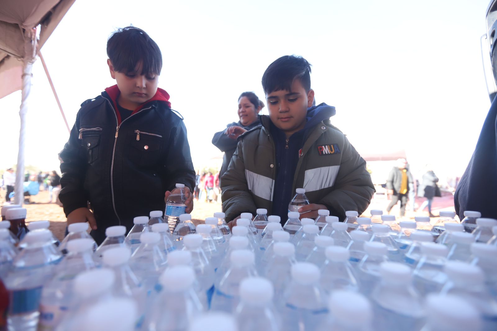 También durante las primeras horas de visita se ofreció café caliente y pan. Más tarde se entregaron botellas de agua purificada y bebidas de sabores.