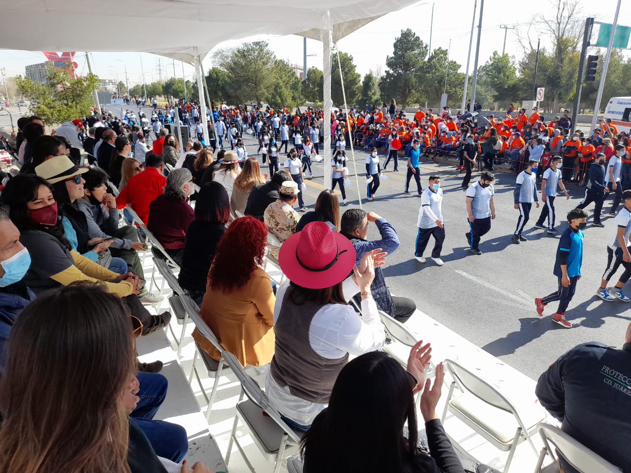 Alrededor de 5 mil personas estarán participando el próximo 20 de noviembre en el Desfile Cívico- Militar para conmemorar el 113 Aniversario de la Revolución Mexicana.La titular de Educación Municipal, Martha Aracely González Holguín, invitó a los juarenses a asistir y disfrutar del evento que dará inicio a las 10:00 de la mañana en la avenida 16 de Septiembre y calle Gregorio M. Solís.Indicó que estarán desfilando instituciones educativas, autoridades militares, dependencias, asociaciones de charros, clubes de servicio y agrupaciones civiles y deportivas.“Estaremos en la avenida 16 de Septiembre porque es lo que nos ha solicitado la ciudadanía, aunque es más difícil pero los juarenses llegan más fácil al lugar, además los desfiles se organizan para los juarenses”, mencionó.González Holguín pidió a los visitantes llevar sus sillas plegables, botellas con agua y sombrillas, ya que será un desfile largo.“Los invitamos a que acudan este 20 de noviembre, es un evento familiar y es la oportunidad de que las familias convivan”, indicó.En el evento estarán participando varias dependencias municipales como la Coordinación General de Seguridad Vial, la Secretaría de Seguridad Pública Municipal y Protección Civil, entre otras.