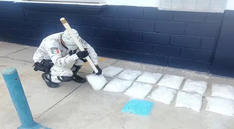Por su parte, el segundo aseguramiento tuvo lugar en Guadalupe, Nuevo León, donde agentes detuvieron a Stephanie “G” por transportar 52 kilogramos de metanfetamina en su auto, lo que equivale a 95 mil dosis de la droga.