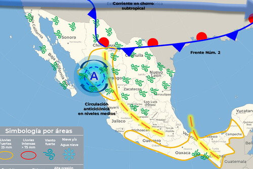 El sistema frontal Núm. 10 adquirirá características cálidas sobre el norte del Golfo de México, dejando de afectar al país, el nuevo frente Núm. 11 y su masa de aire frío ingresarán sobre el noroeste y norte del territorio nacional, interaccionarán con las corrientes en chorro polar y subtropical, inestabilidad en niveles altos de la atmósfera, y con una línea seca que se establecerá sobre el noreste de México, ocasionando rachas fuertes de viento en las mencionadas regiones, además de la posible formación de torbellinos en zonas de Chihuahua, Coahuila y Nuevo León.