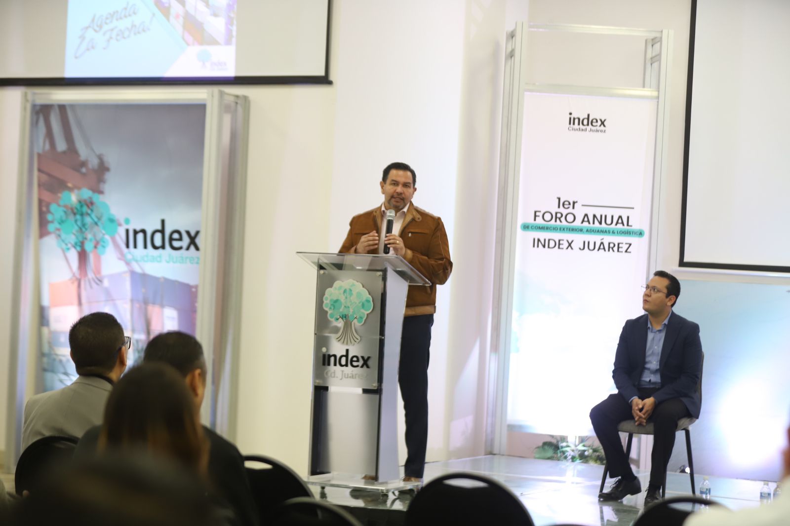 El alcalde felicitó a Index y al área de Comercio Exterior por el evento, ya que todos saben lo importante que es la industria maquiladora para la economía de Juárez. Diariamente 350 mil personas trabajan en la industria en esta frontera, lo que habla de que son las empresas maquiladoras el motor de la economía, expresó. Agradeció a Sergio Colín Chávez, presidente de Index Juárez, la invitación al foro.