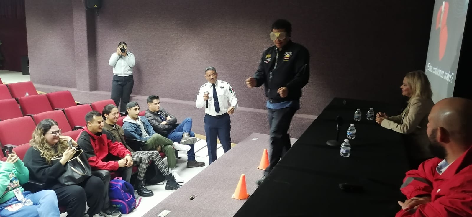 Con el objetivo de concientizar a estudiantes universitarios sobre la importancia de conducir correctamente un vehículo y no exponerse ante los riesgos que esto implica, personal de Educación Vial de la Coordinación General de Seguridad Vial dio una plática a 18 estudiantes de la Facultad de Ciencias Políticas y Sociales de la Universidad Autónoma de Chihuahua (UACH).Los policías viales explicaron la importancia que tiene el cumplir y hacer cumplir el Reglamento de Vialidad y Tránsito para el Municipio de Juárez, las obligaciones y las responsabilidades del peatón y el pasajero, el uso correcto del cinturón de seguridad, el alcohol y el volante, la velocidad y el exhibicionismo, entre otros temas.A los interesados en estas charlas, pueden agendar un espacio y recibirla en sus instalaciones, comunicándose a los números telefónicos 656-737-0334 y 656-737-0335, o bien, acudiendo directamente a las instalaciones de Educación Vial de 8:00 a 15:00 horas de lunes a viernes, en Heroico Colegio Militar casi esquina con Universidad.Las pláticas y capacitaciones que da la Coordinación General de Seguridad Vial no solo buscan dotar de las herramientas necesarias para evitar percances a la ciudadanía, sino que también cuenten con el conocimiento requerido en temas viales para mejorar la convivencia entre los conductores.La corporación trabaja “Por una mejor cultura vial”, con el fin de disminuir incidentes, crear conciencia y responsabilidad al momento de transitar por las diversas vialidades de nuestra ciudad.