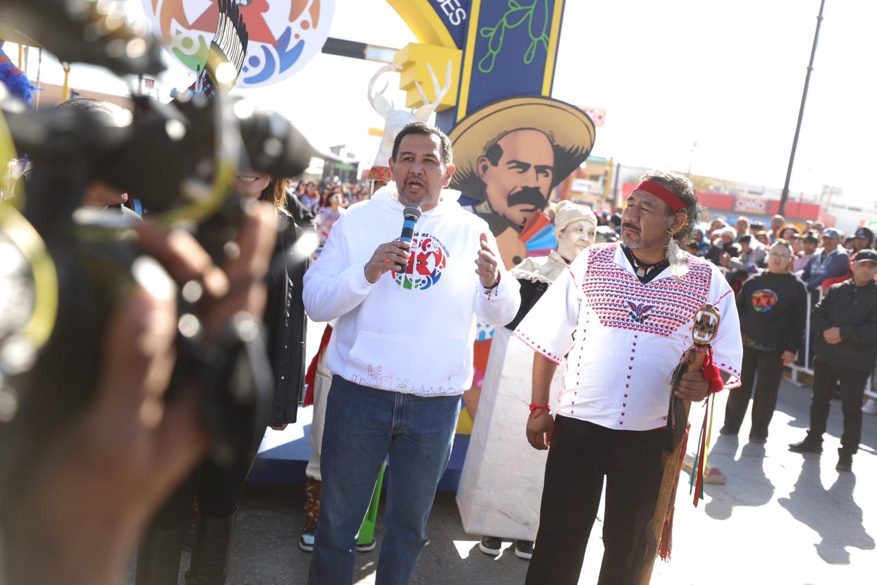 El Presidente Municipal, Cruz Pérez Cuéllar, dio inicio al Segundo Gran Desfile Conmemorativo por el Aniversario de Ciudad Juárez que se llevó a cabo en el bulevar Zaragoza y donde el estado invitado en esta ocasión fue Oaxaca.