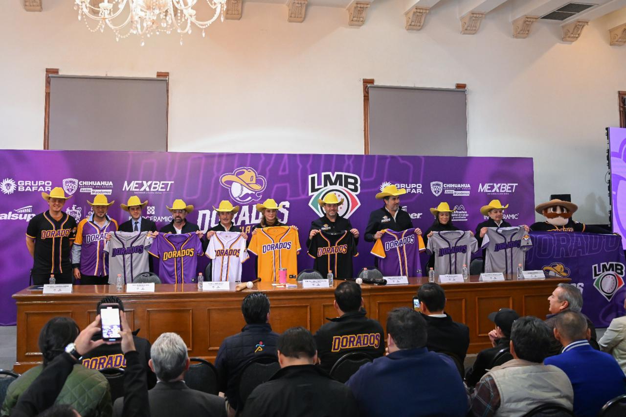 La gobernadora Maru Campos presidió en el Palacio de Gobierno, la ceremonia en que fue presentado oficialmente el equipo Dorados de Chihuahua, como nuevo integrante de la Liga Mexicana de Beisbol (LMB), certamen al que regresa luego de 14 años de ausencia.
