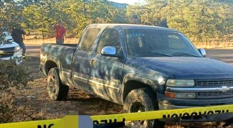 Esta mañana, una llamada anónima dio a conocer a las autoridades que en el tramo de la carretera de Guerrero a Tomóchi había una troca Chevrolet azul de cabina y media modelo 2000 abandonada.