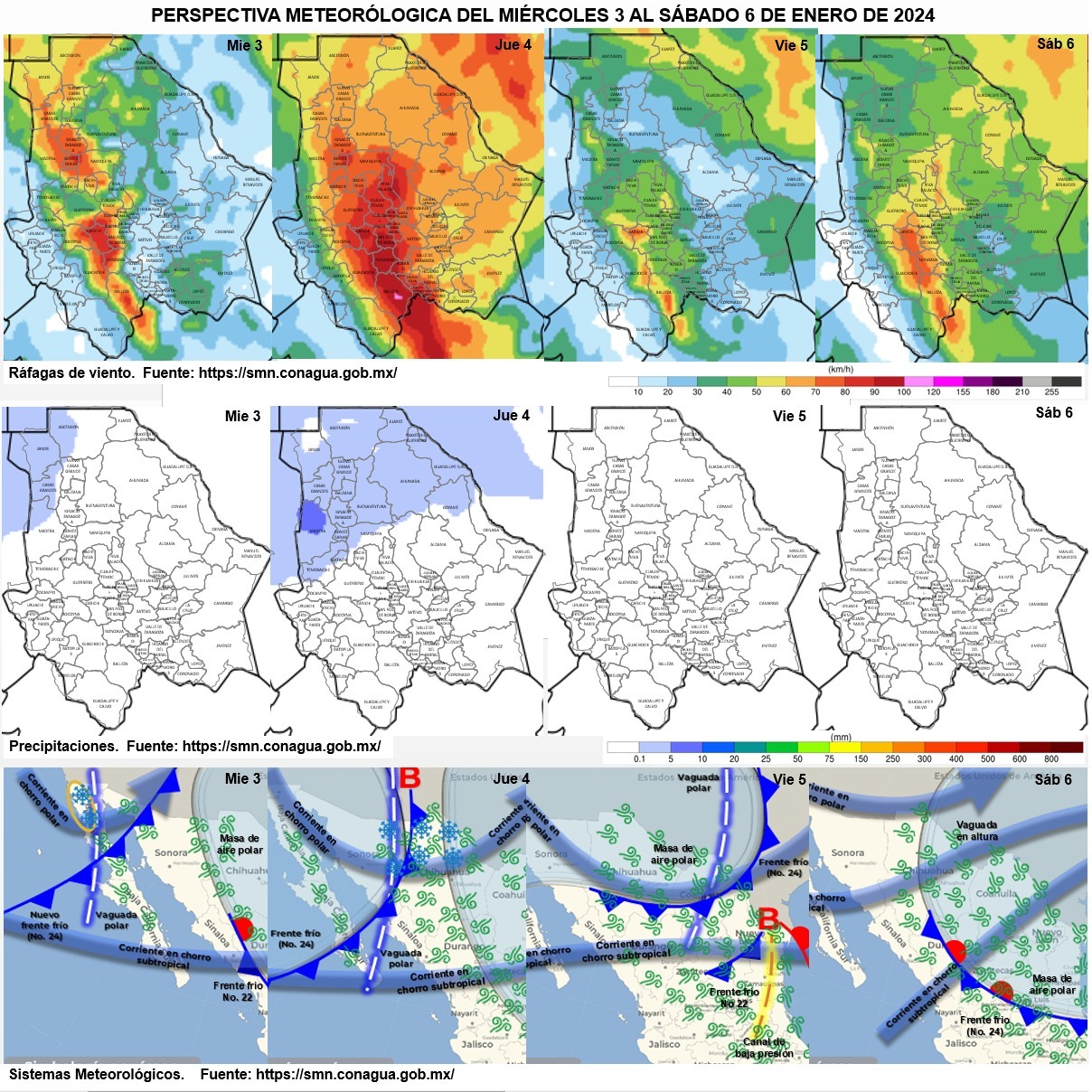 La Coordinación Estatal de Protección Civil (CEPC), dio a conocer que para las próximas 48 horas, se pronostican vientos con ráfagas que podrían alcanzar los 85 kilómetros por hora (km/h) en partes de las zonas oeste, suroeste y centro de la entidad. La dependencia advierte sobre la posibilidad de que estas rachas ocasionen tolvaneras en Juárez, Ascensión, Janos, Ignacio Zaragoza, Gómez Farías, Carichí, Nonoava y Balleza, por lo que se exhorta a la ciudadanía a mantener medidas preventivas.