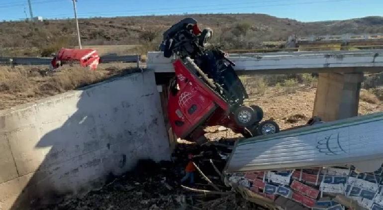 Los hechos ocurrieron durante la tarde del jueves, cuando el tripulante de un tráiler con semirremolque adaptado, perdió el control de la pesada unidad muy cerca del acceso a Ejido Guillermo Baca. A esta zona se le conoce como “Curva de la muerte”. Chocó el conductor contra un muro contención y el semirremolque volcó al interior de un arroyo. El trabajador del volante perdió las piernas durante el fuerte accidente y lo trasladaron a un hospital, donde horas más tarde perdió la vida. Lo identificaron como Jesús Cruz Herrara, de 29 años.