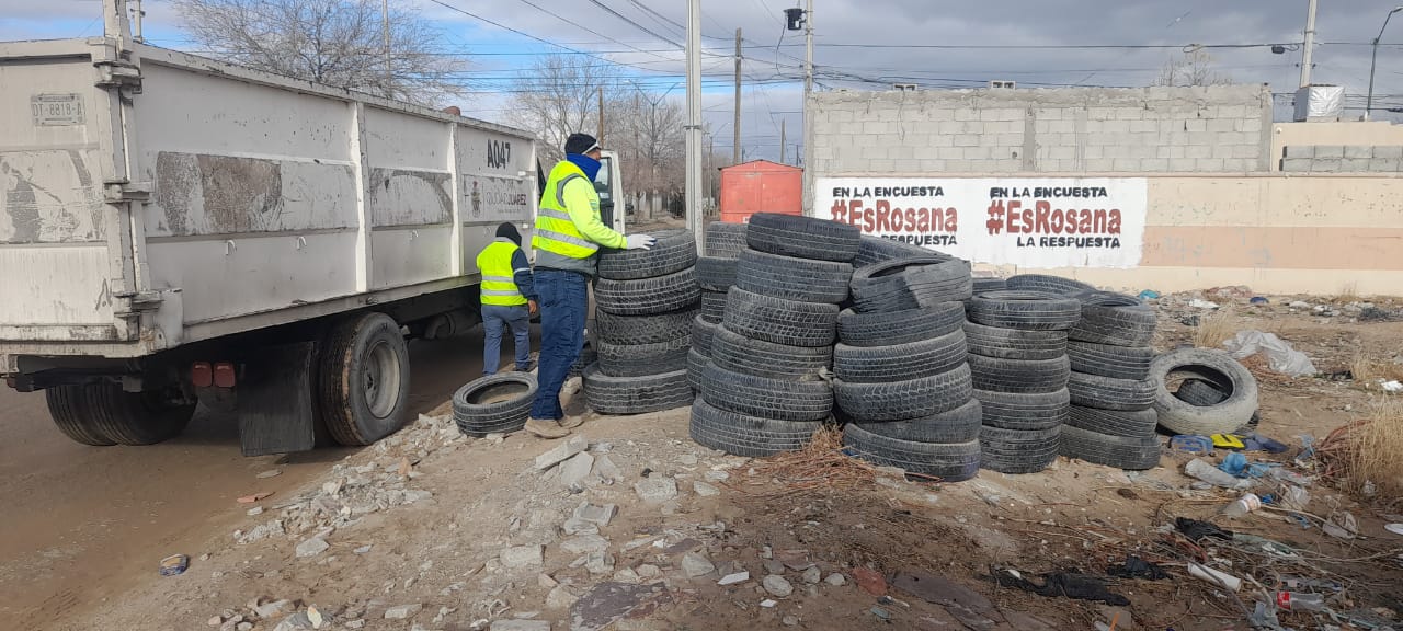 Trabajadores de la Dirección de Limpia recogieron 140 llantas en desuso que se encontraban en el Centro Comunitario de la Universidad Autónoma de Ciudad Juárez, luego de que las retiraron de las calles en la colonia Lote Bravo, dio a conocer Gibran Solís Kanahan, director de la dependencia.“Este lugar a cargo de la maestra Verónica Quintana, da atención a habitantes de colonias aledañas, en el suroriente de la ciudad, además sus integrantes les hacen la invitación para que una parte del lugar funja como resguardo de llantas en desuso, con el fin de limpiar el sector y el compromiso con ellos es visitarlos una vez al mes para recoger esos neumáticos”, explicó.Agregó que los estudiantes y encargados del Centro Comunitario de la casa de estudios de Ciudad Juárez, trabajan en coordinación con los vecinos para limpiar su entorno.“Desde el inicio de la administración municipal, pudimos establecer una buena relación y comunicación con la UACJ, ojalá pudiéramos tener más participación en la ciudad para reproducir este tipo de ejercicios que nos demuestran que juntos sociedad y Gobierno podemos ir encaminados al Juárez que todos queremos”, expresó.Solís Kanahan agregó que una vez que las cuadrillas hacen la recolección en el punto, aprovechan para retirar los neumáticos que se encuentren en el camino.