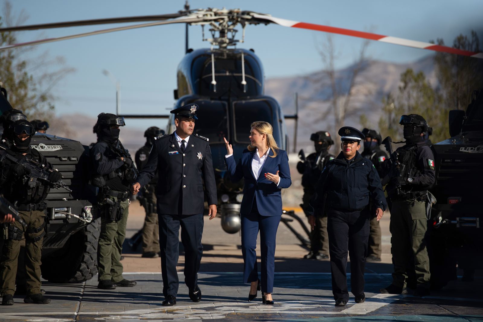 Durante 2023, informó, se integraron 610 nuevos elementos a la Policía Estatal y a la Agencia Estatal de Investigaciones (AEI) y se realizaron importantes detenciones. La mandataria comunicó además que se adquirieron nuevas patrullas y equipamiento diverso para las policías de 55 municipios del estado, y que continúa la implementación de los programas de prevención dirigidos a las niñas y niños chihuahuenses.