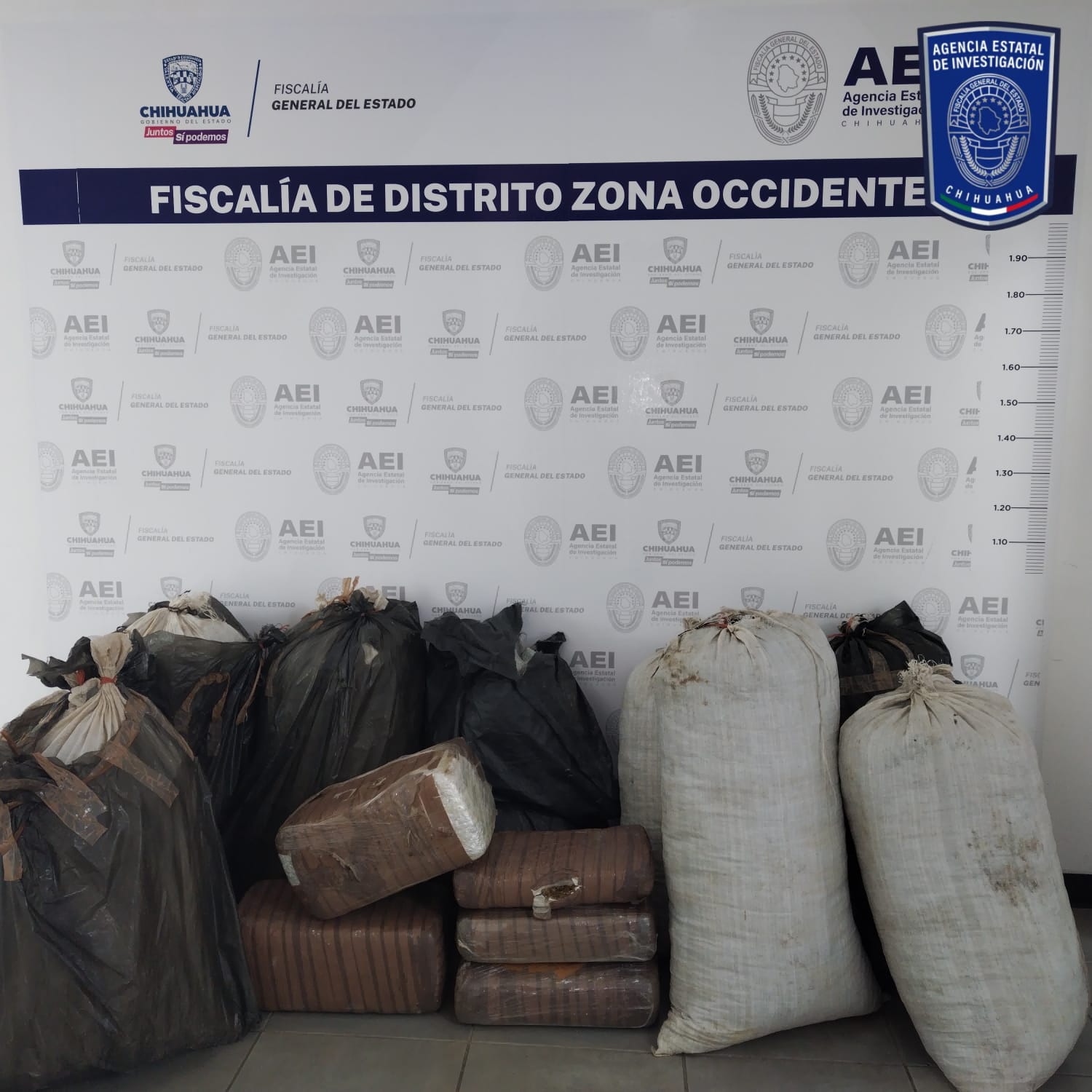 En recorridos de prevención y vigilancia que realizan elementos de la Agencia Estatal de Investigación (AEI), adscritos a la Fiscalía de Distrito Zona Occidente, aseguraron 171 kilos de mariguana que encontraron en una brecha que conduce a la Mesa de Arturo, municipio de Urique.