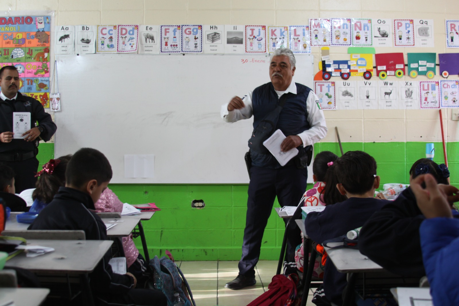 Elementos de la Coordinación General de Seguridad Vial, destacamentados en el área de Educación Vial, llevaron la plática denominada Alumno Vial a 348 estudiantes de la Escuela Primaria Cuitláhuac, ubicada en las calles Yaquis y Chamulas, de la colonia Azteca.