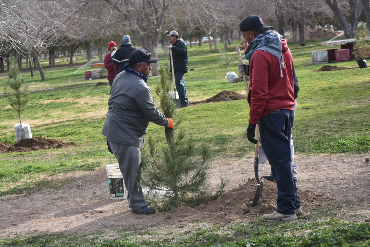 A fin de continuar mejorando El Chamizal, la Dirección de Parques y Jardines mantiene los trabajos de reforestación en este parque, en donde han plantando en los últimos dos meses más de 200 árboles en diferentes polígonos.Daniel Iván Zamarrón Saldaña, titular de la dependencia, indicó que se continúa con una forestación importante en este espacio, en donde durante semanas atrás plantaron 170 pinos afganos y 30 palmeras, pero este día siguieron colocando otros 30 pinos en el espacio ubicado frente al Museo de Arqueología e Historia de El Chamizal.“En esta ocasión y complementando las labores que llevamos a cabo en la jornada de trabajo de voluntariado, estuvimos banqueando pinos en el sector del vivero y en estos días los vamos a plantar en el camellón de la avenida Heroico Colegio Militar y en unos sectores del parque El Chamizal”, dijo el funcionario.Zamarrón exhortó a la ciudadanía a cuidar estas nuevas especies, tratando de no afectarlos al momento de jugar, con la finalidad de que los árboles puedan crecer de manera correcta y desarrollar sus raíces de manera adecuada.