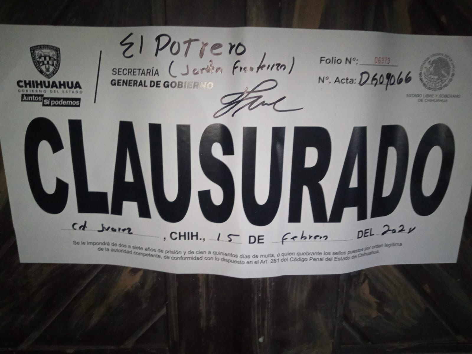 La autoridad estatal informa que los establecimientos que fueron clausurados fueron los siguientes:• Cantina “La Buena Amistad” por operar fuera de horario (Cd. Chihuahua).• Restaurante Bar “New Sheridan” por no presentar permiso provisional vigente y promoción (Cd. Chihuahua).• Restaurante Bar “Taquería 18” por riña al interior (Cd. Chihuahua).• Quinta Zarco por falta de permiso (Cd. Chihuahua).• Restaurante “Nox Soul Kitchen” por falta de licencia de alcoholes, falta de licencia de uso de suelo, falta de revalidación y falta de dictamen de aforo (Cd. Chihuahua).• Restaurante con venta de cerveza y vinos y licores “Affogati” por permiso provisional vencido y promoción en venta de alcohol (Cd. Chihuahua).• Cantina “Las Acacias” por falta de revalidaciones, bebidas caducas, sin placa de aforo ni licencia de uso de suelo (Cd. Chihuahua).• Restaurante Bar “Rodeo West Bar (El Olvido) por permiso provisional vencido (Ojinaga).• Tienda de Abarrotes “El Cero” se clausuraron refrigeradores por violación de giro (Cd. Juárez).• Centro Nocturno “Super SIX D´Cierto N” por violación de giro (Cd. Juárez).• Restaurante Bar “PEK2” por no atender acta en tiempo y momento (Cd. Juárez).• Tienda de Abarrotes “Chavarria (Six)” por violación de giro (Cd. Juárez).• Tienda de Abarrotes “Jazmín” se clausuraron refrigeradores por violación de giro (Cd. Juárez).• Tienda de Abarrotes “Gaby´s” se clausuraron refrigeradores por violación de giro (Cd. Juárez).• Licorería en tienda de autoservicio “Extra Benavente (Circle K)” por doble denominación (Cd. Juárez).• Tienda de Abarrotes “Six La Pasadita” por permiso provisional vencido (Cd. Juárez).• Tienda de Abarrotes “Super Six Agua Prieta” por violación de giro (Cd. Juárez).• El Potrero (Jardín Fronterizo) por hechos de sangre, no contar con licencia y no contar con personal de seguridad (Cd. Juárez).• Salón de Baile “Cowboy Disco TQ (Enigma)” por operar fuera de horario (Cd. Juárez).• Restaurante Bar “Cotorritos” por permiso provisional vencido (Cd. Juárez).• Restaurante Bar “Asenzo” por permiso provisional vencido (Cd. Juárez).• Centro Nocturno “Joker 1” por promoción de bebidas alcohólicas y extracción de bebidas alcohólicas (Cd. Juárez).