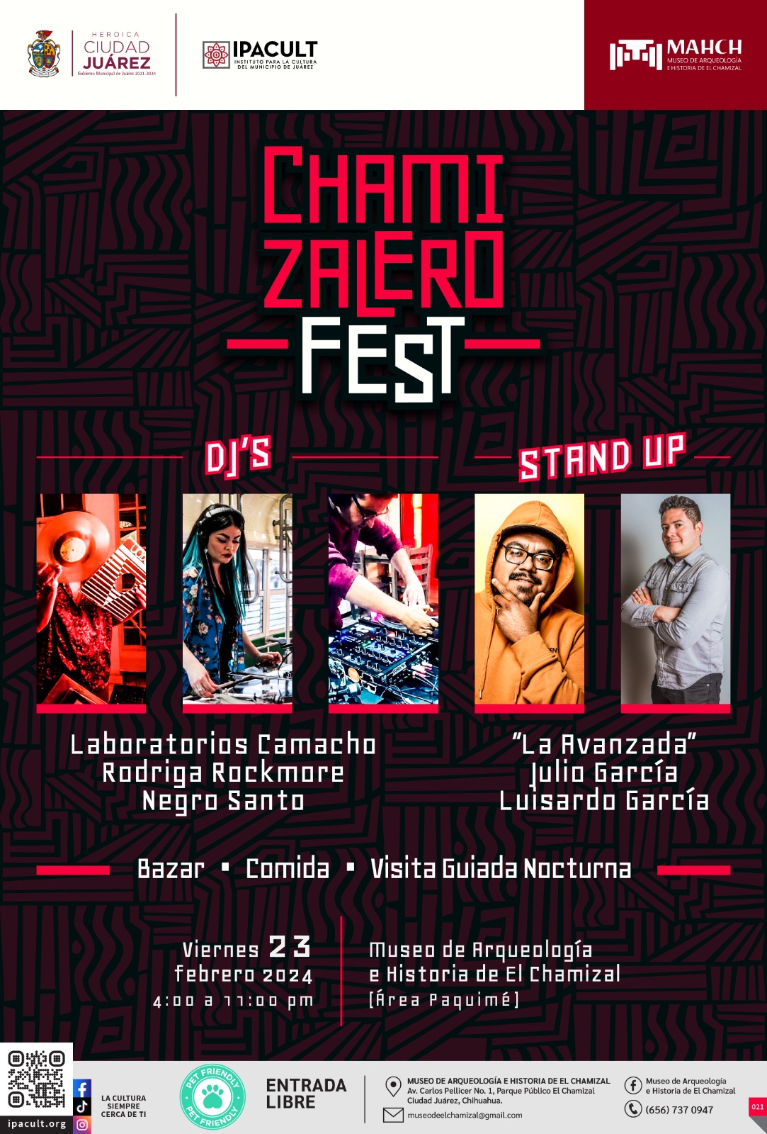 El nuevo programa del Instituto para la Cultura del Municipio de Juárez (IPACULT) que realizará a través del MAHCH, tiene como objetivo celebrar y promover la diversidad cultural, además de crear espacios en los cuales las y los artistas puedan compartir su trabajo con la población.Chamizalero Fest, tendrá bazar, talleres, exposiciones, y para esta primera edición, la música estará a cargo de los DJ Rodriga Rockmore, Laboratorios Camacho y Negro Santo. En cuanto a la comedia, se presentarán “La Avanzada” con Julio García y Luisardo García.