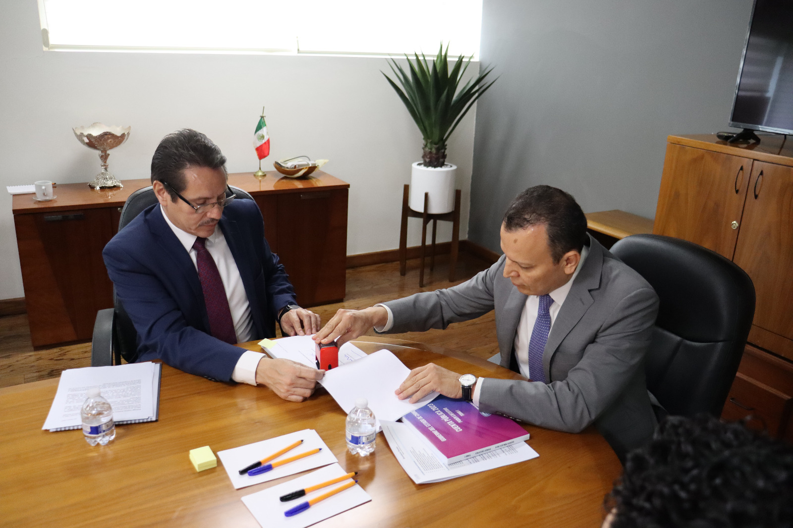 El secretario de Hacienda, José de Jesús Granillo Vázquez acompañado de su equipo de trabajo, entregó la Cuenta Pública 2023 al Congreso del Estado, a través de la Auditoría Superior del Estado de Chihuahua, en cumplimiento con el artículo 13 de la Ley de Fiscalización Superior del Estado.El documento consta de 41 tomos impresos y diversos CD’s, que contienen la información contable, presupuestaria, programática y complementaria de 127 entes de los poderes Ejecutivo, Legislativo y Judicial, de órganos autónomos y del sector paraestatal. El funcionario destacó que esta administración tiene como principal objetivo, la construcción de un estado próspero en el que las familias puedan tener una mejor calidad de vida, a través de servicios eficientes, seguridad, salud, educación y mejores oportunidades de desarrollo. “Para lograr estas metas y construir el Chihuahua con el que soñamos, ha sido indispensable poner orden en la casa y llevar finanzas sanas, trabajando con presupuestos balanceados con énfasis en los sectores prioritarios”, expresó. Destacó que durante 2023, los ingresos totales incrementaron nuevamente un 15 por ciento y se registró un crecimiento de la inversión pública de un 48 por ciento, con relación a 2022. Asimismo, externó su disposición de aportar algún otro elemento que sea necesario para el análisis de la cuenta pública. Al respecto el auditor Héctor Acosta Félix, agradeció a la Secretaría de Hacienda y al Gobierno del Estado, por su disposición al entregar la información completa y a tiempo. “Ha sido una buena experiencia estos dos años que hemos venido trabajando con esta administración y ha sido de forma coordinada, por lo que los resultados están a la vista” expresó. Como parte del acto de entrega, el auditor superior firmó y selló de recibidos los documentos y posterior a ello, se dará inicio con la apertura para su fiscalización. En el acto protocolario estuvieron presentes la subsecretaria de Egresos, Verónica García Reyes; la subsecretaria Administrativa, Flor Magallanes Villa; el subsecretario de Ingresos, Daniel Jaime Cruz y el director Jurídico de la Secretaría de Hacienda, Roberto Javier Fierro Duarte. Además de la directora de Contabilidad, Jeanette Martínez Estrada; la jefa de Seguimiento y Enlace del Consejo de Administración Contable, Griselda Acosta García y los titulares del área de Fiscalización de la Auditoría Superior del Estado.