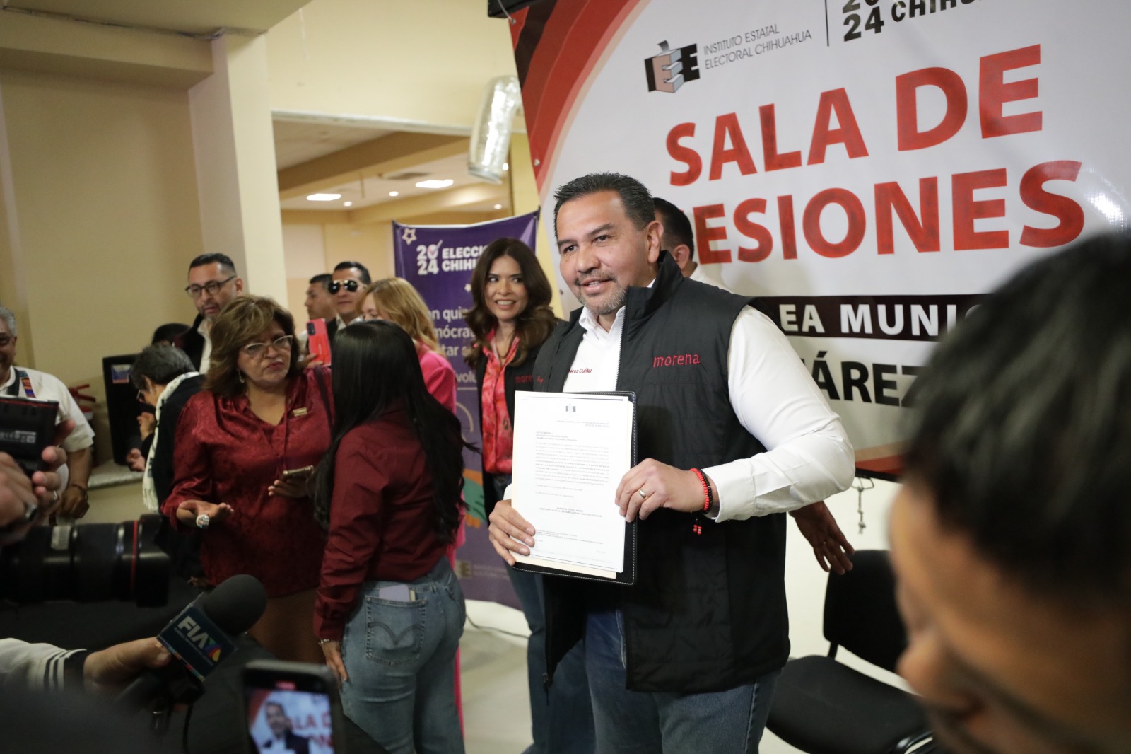 Domingo 10 de marzo del 2024.- Cruz Pérez Cuéllar se registró esta tarde ante la Asamblea Municipal Electoral como candidato a la Presidencia Municipal de Juárez por la coalición “Sigamos Haciendo Historia” en la que además de Morena, la integran el Partido del Trabajo y el Partido Verde Ecologista de México.