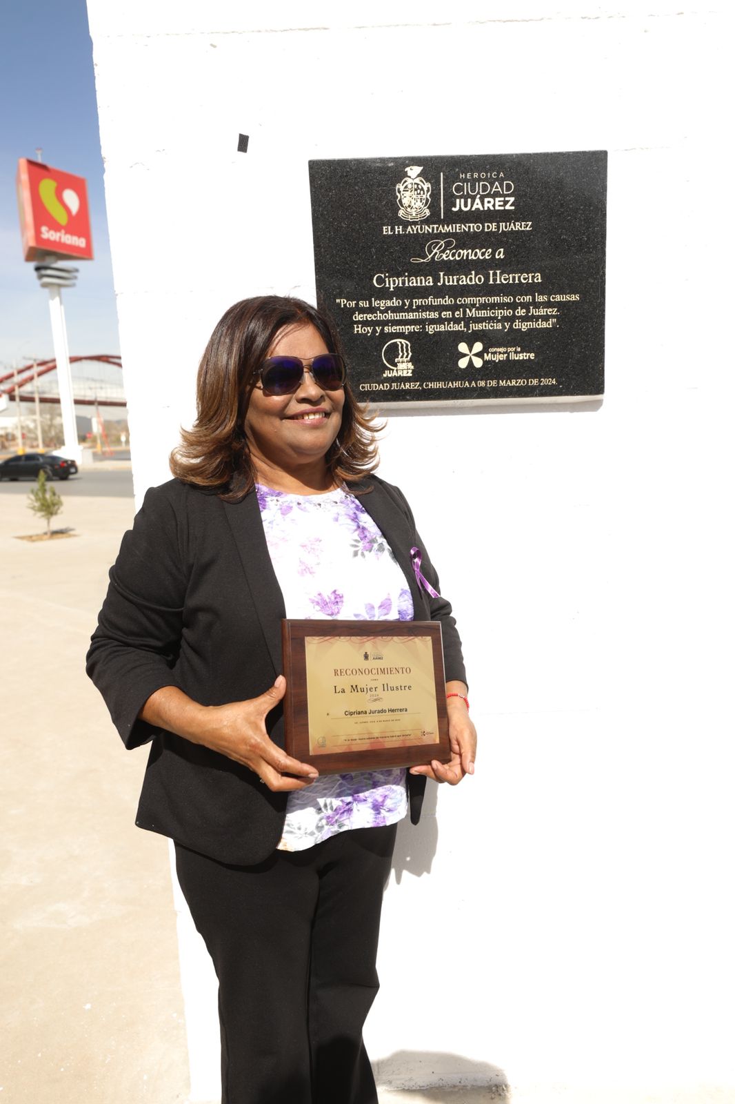 Al recibir su reconocimiento, Cipriana Jurado Herrera dijo que hoy regresa a Juárez para recibir un reconocimiento que la honra, la llena de orgullo y la inspira para seguir trabajando a favor de aquellas personas que sufren.