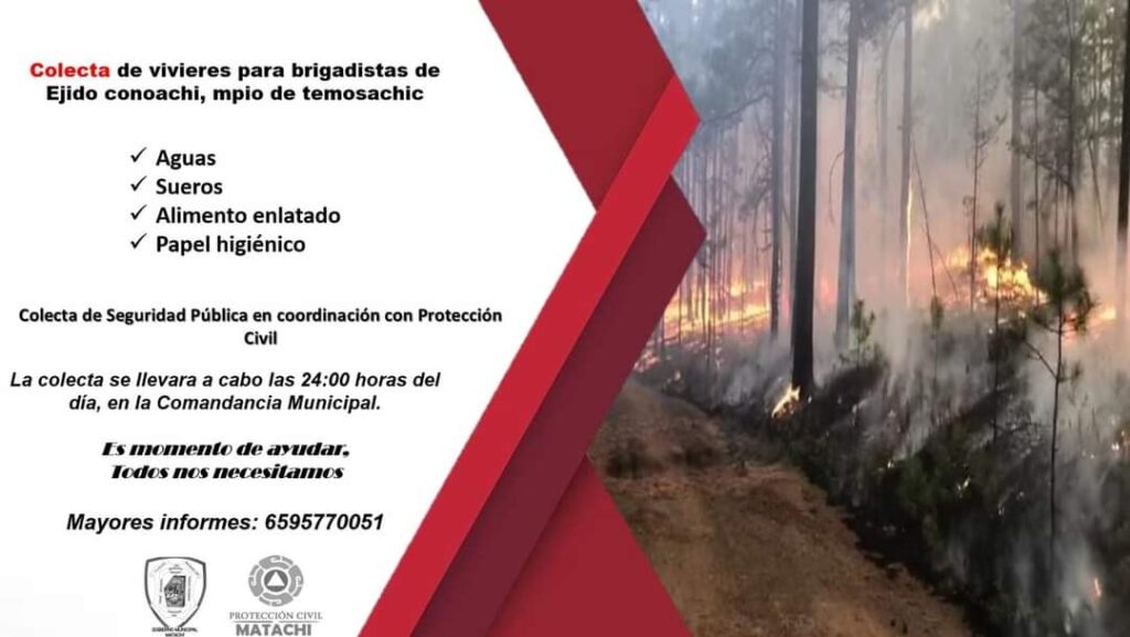 A través de redes sociales difundieron imágenes del incendio forestal en el municipio de Temósachic y solicitaron apoyos para los brigadistas combatientes.