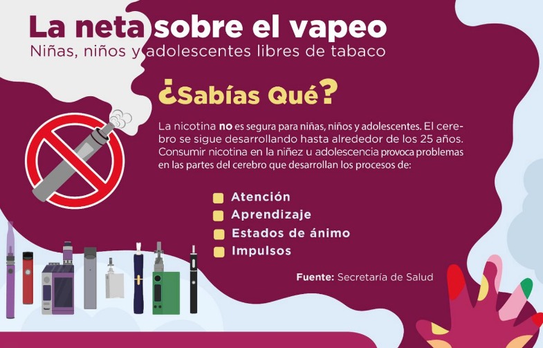 El Sistema Municipal de Protección Integral de Niñas, Niños y Adolescentes (SIPINNA), pide a los padres de familia conocer más sobre el uso de cigarrillos electrónicos debido a que es un dispositivo que puede causar graves consecuencias en la salud de sus hijos.