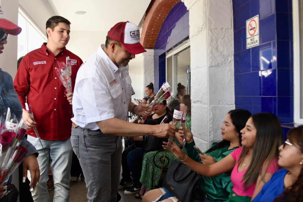 El candidato a la alcaldía por la coalición “Sigamos Haciendo Historia por Chihuahua”, Cruz Pérez Cuéllar, felicitó y entregó rosas a madres de familia en cruceros viales y restaurantes de la ciudad.