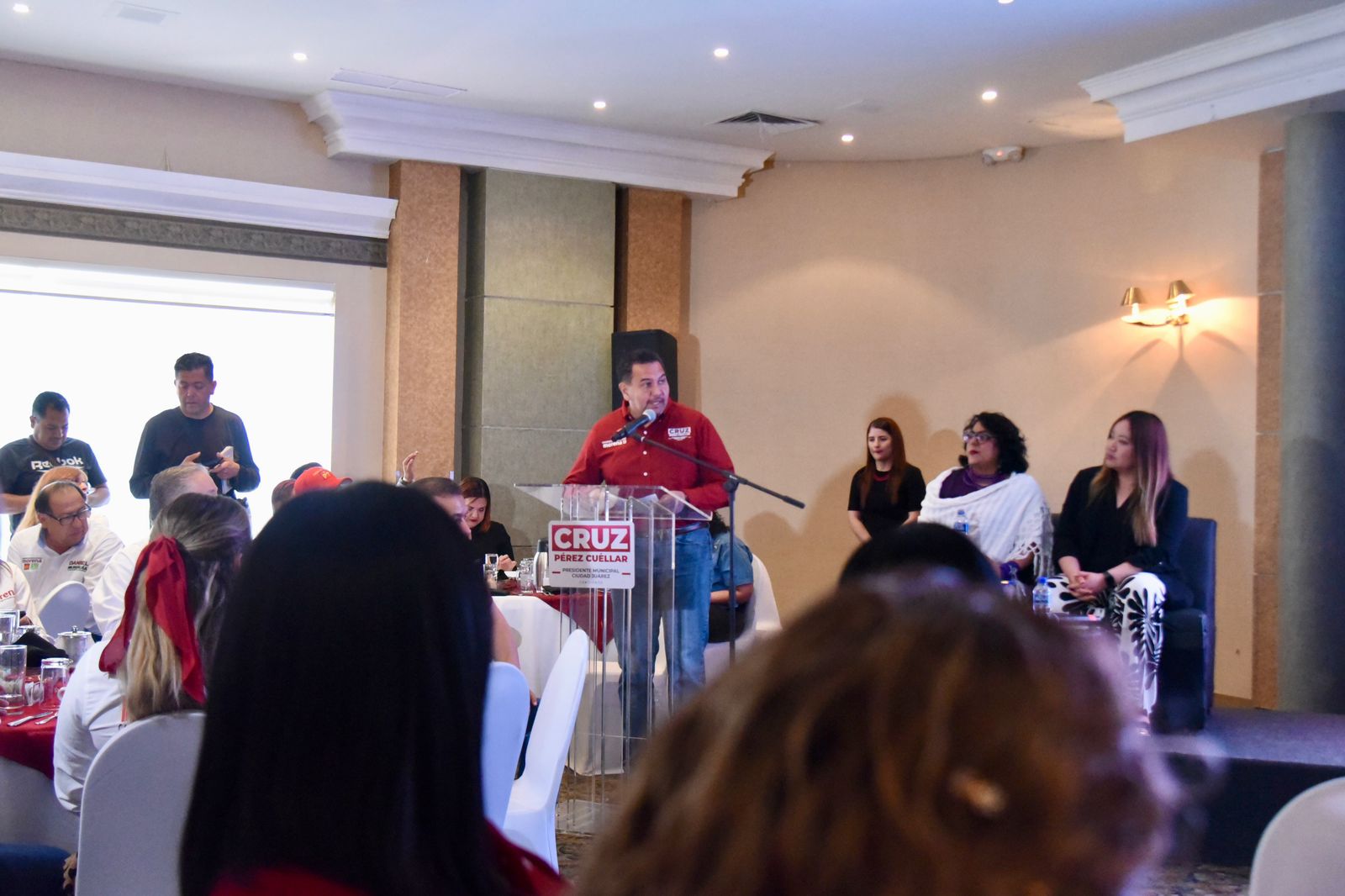 El candidato a la alcaldía por la coalición “Sigamos Haciendo Historia por Chihuahua”, Cruz Pérez Cuéllar, acudió al foro “Prevención de la violencia contra las mujeres en el ámbito familiar”, para hablar sobre avances y retos en el ámbito municipal.