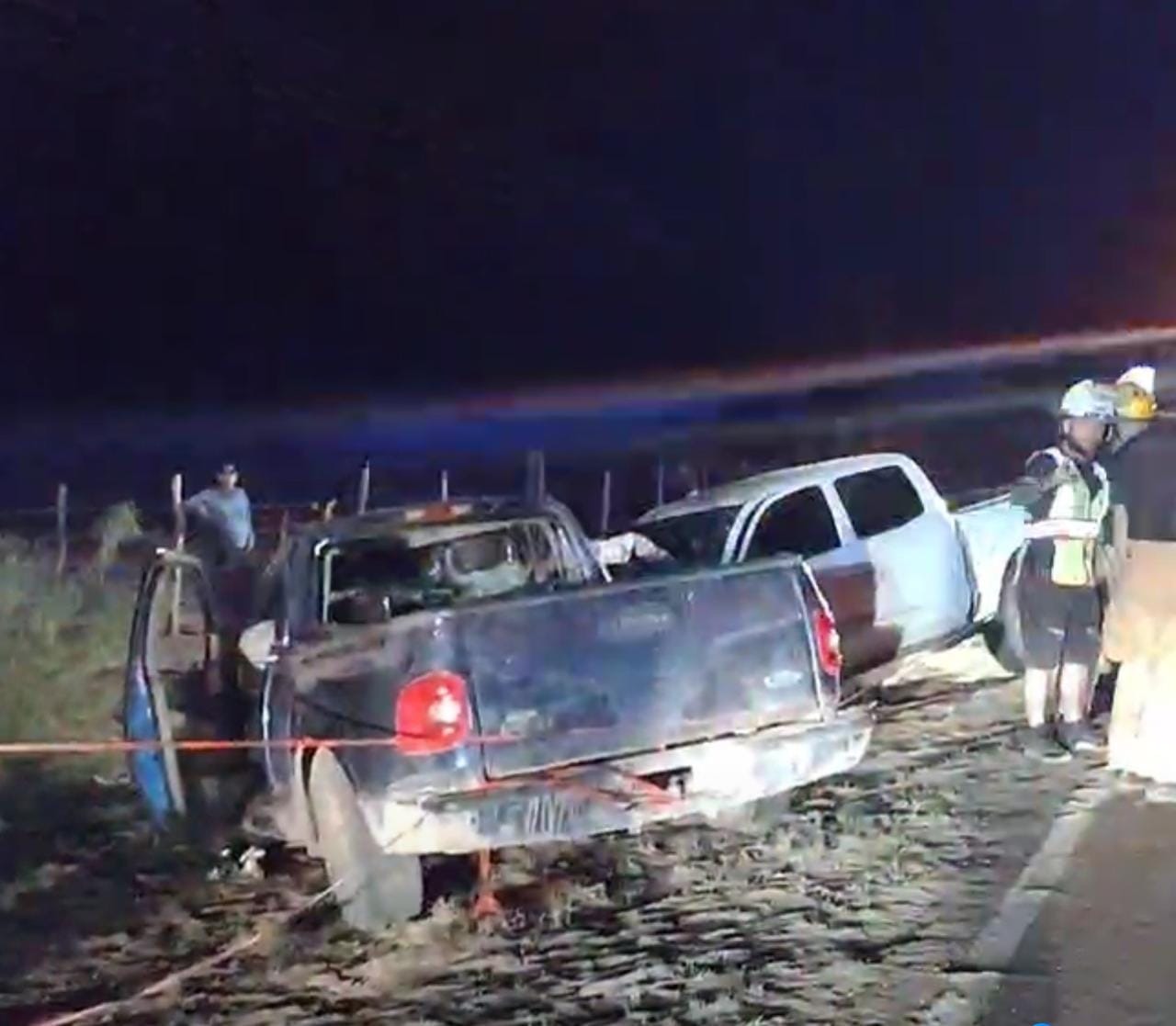 Dos camionetas Pick Up, una de ellas Ford F150 en color azul y otra en color blanco chocaron de frente anoche, aproximadamente a las 22:30 horas en la carretera que va a Sección Hidalgo, dando como resultado una persona fallecida y 6 mas lesionadas, siendo trasladadas por paramédico de la Cruz Roja a diversos hospitales de Nuevo Casas Grandes para recibir atención médica. Desafortunadamente en la camioneta azul, en el lugar del copiloto quedó el cuerpo sin vida de un joven, de 23 años de edad identificado como Joel G.Z. Al lugar acudieron elementos de Bomberos, Protección Civil y Paramédicos de Cruz Roja, así como elementos de la Policía Estatal, quienes se hicieron cargo de realizar las maniobras correspondientes y esperar la llegada de la AEI, para hacer el levantamiento del cuerpo y realizar las periciales necesarias y deslindar responsabilidades.
