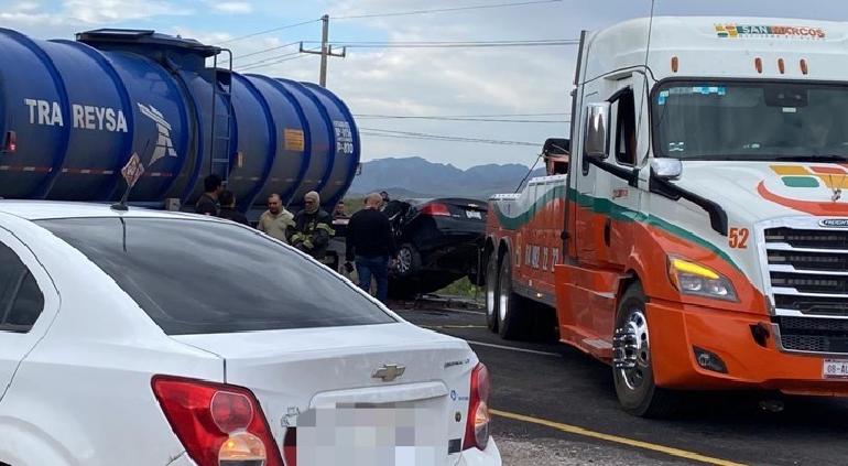 El impacto se generó entre un tráiler con doblesemirremolque tipo carrotanque acoplado y un Chevrolet, Aveo, de color negro, con placas EHV-037-A. La pesada unidad correspondía a la empresa Trareysa.