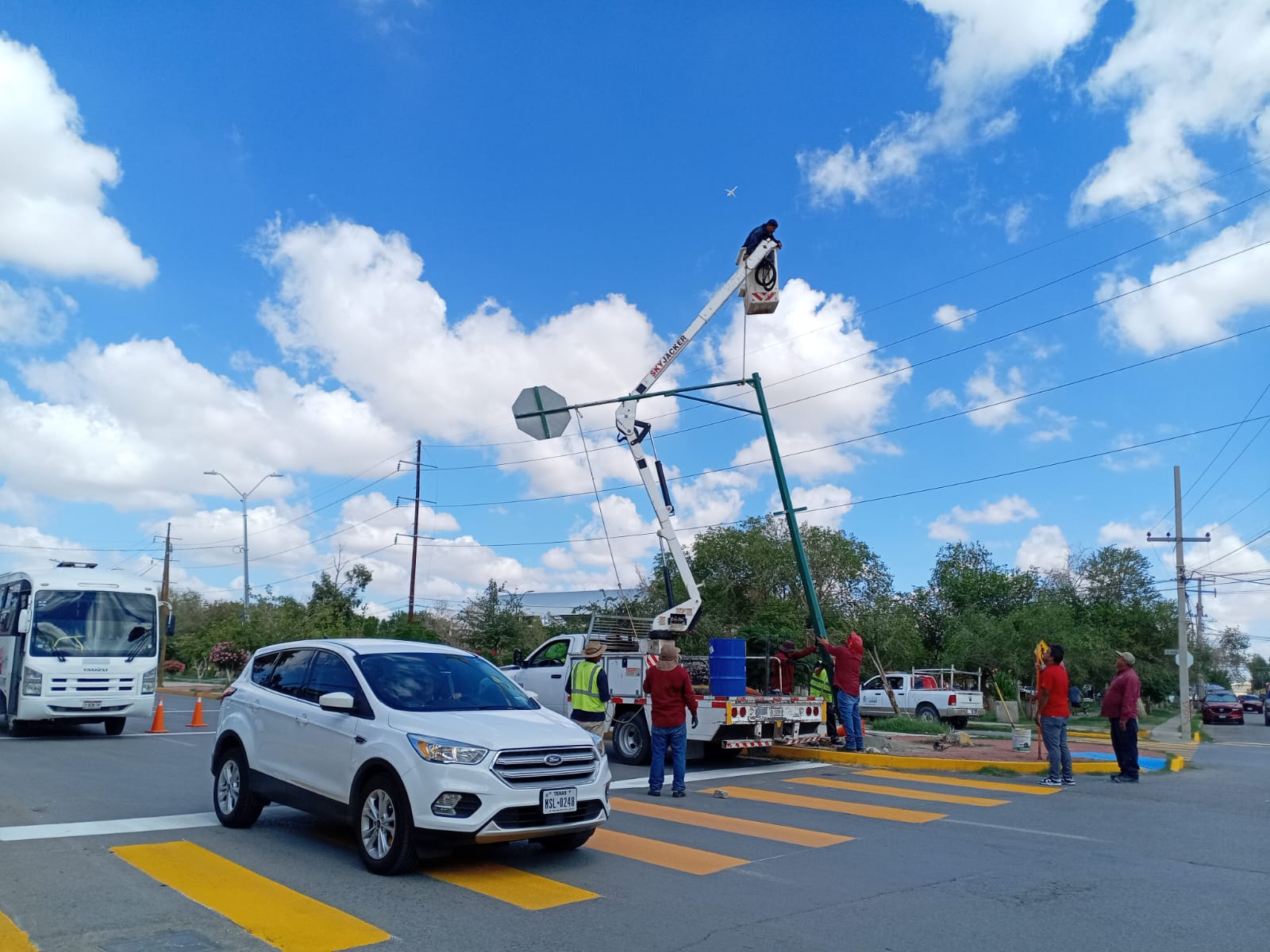 Estos trabajos, que tienen la finalidad de dar una mayor certeza vial a quienes transitan por ese sector, fueron realizados por una cuadrilla de colaboradores de esta dependencia municipal, quienes además pintaron en los pasos peatonales, líneas de frenado y cordones de banqueta en el cruce.