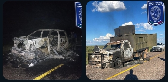 La tarde y noche del lunes 16 de septiembre, las Bases de Operación Interinstitucional (BOI), atendieron reportes sobre la localización de dos vehículos con daños por incendio, en diversos puntos de la carretera que conduce del municipio de Coronado a Valle de Allende.