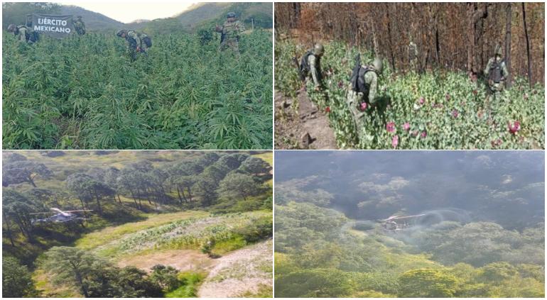 De acuerdo con la Secretaría de Seguridad y Protección Ciudadana (SSPC) de México, durante el jueves llevaron a cabo la destrucción de los plantíos de los dos tipos de droga.
