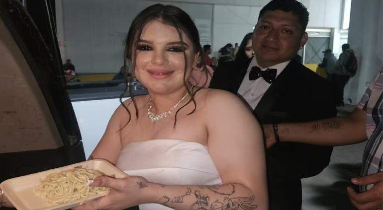 Luego de que los invitados no acudieron a su fiesta, una pareja de recién casados repartió el banquete de bodas a gente al exterior del Hospital General de Reynosa.