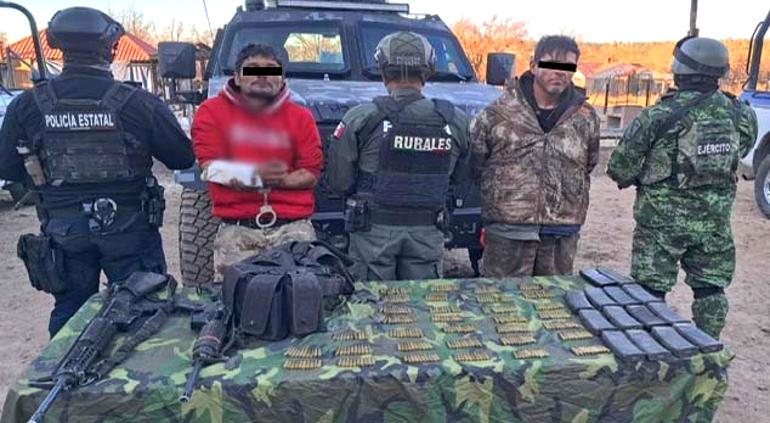 Militares, guardias nacionales y policías estatales arrestaron a dos hombres con armas largas, cargadores y cartuchos después de un enfrentamiento armado en el municipio de Madera, en el noroeste del estado de Chihuahua. Uno de los atacantes quedó herido