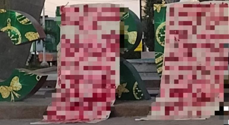 Testigos mencionaron que las mantas estaban escritas con tinta roja, tenían un mensaje dirigido a la presidenta Claudia Sheinbaum.