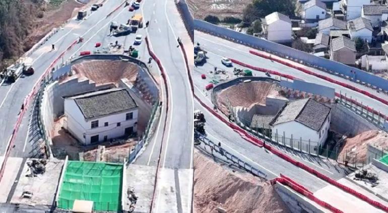A través de las redes sociales, viralizaron a un abuelito que se negó a vender su casa al gobierno y ahora vive en medio de una carretera en construcción. Para salir de su casa, debe atravesar un túnel.