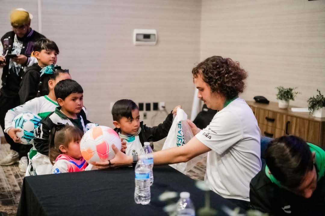 Niñas y niños, acompañados de su familia, cumplieron el sueño de conocer a sus ídolos en una convivencia con jugadores del Club Santos Laguna que hizo posible el Sistema para el Desarrollo Integral de la Familia del Municipio de Juárez (DIF).