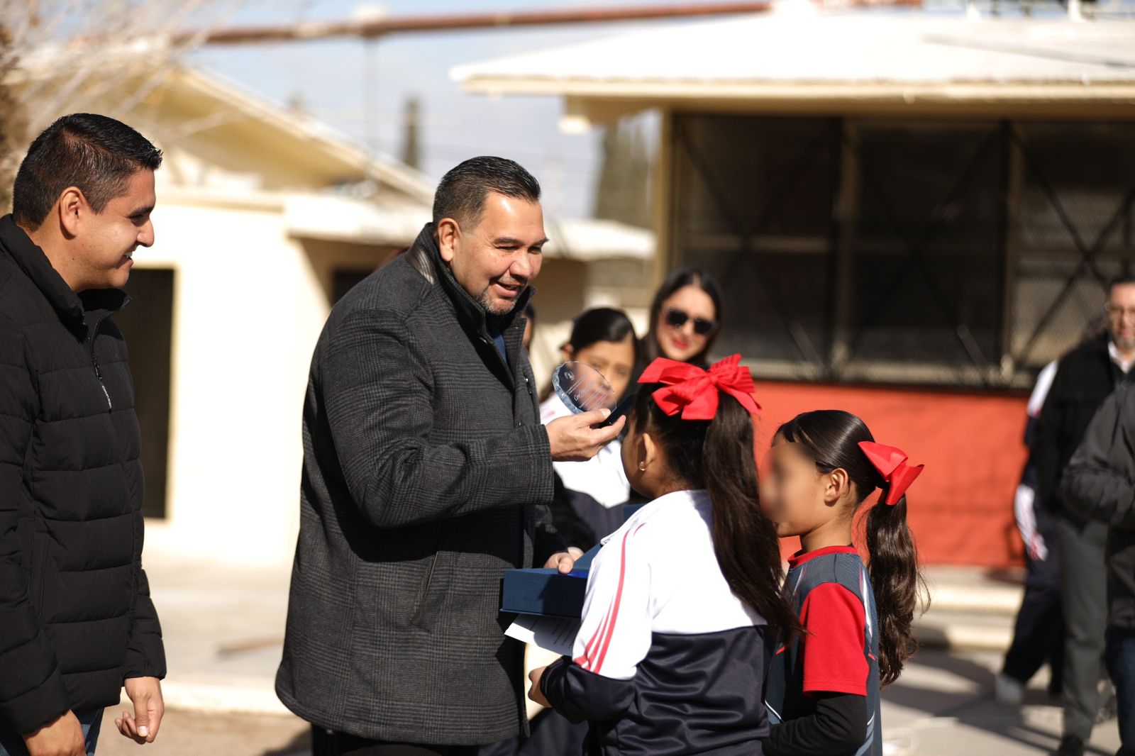 En este lugar se contó con la presencia de Liliana Edith Becerra, directora de la escuela; Alfredo Jáuregui, supervisor general del Sector 13, María Mayela Meza Chaires, supervisora de zona e Ismael Rueda, coordinador de Infraestructura Educativa del Municipio.