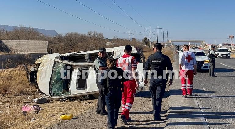 Una mujer y un adolescente resultaron con lesiones de gravedad tras una aparatosa volcadura en el kilómetro 33 de la carretera que conduce a Ciudad Juárez.