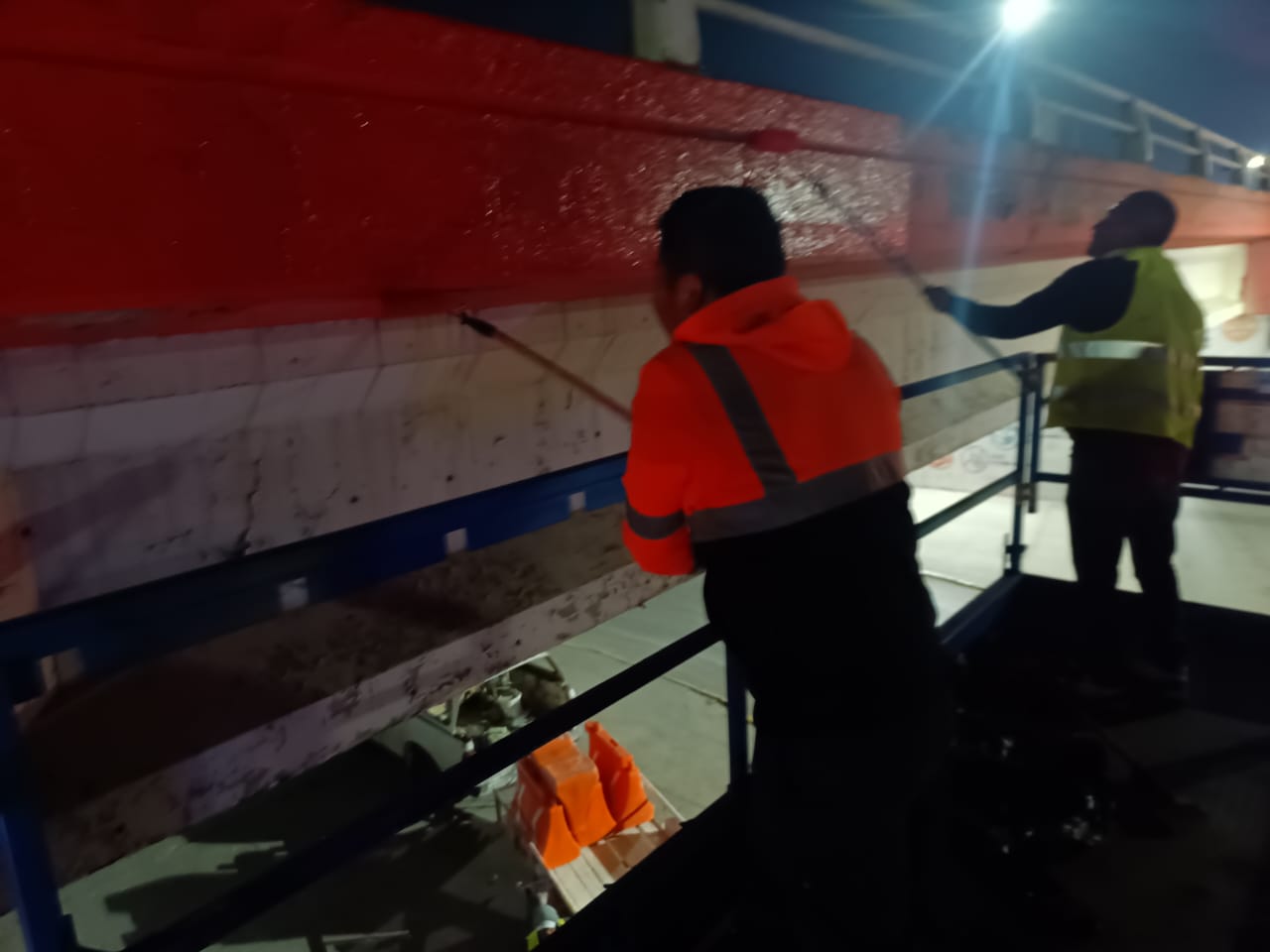“Como parte de los trabajos de mejoramiento de la imagen urbana de la ciudad correspondiente a la Dirección General de Servicios Públicos a través del personal de Limpia, en específico de la cuadrilla antigrafiti, se inició con la pintura de esta estructura mejor conocida por los juarenses como puente ‘al revés’, que conecta la avenida De la Raza con el bulevar Manuel Gómez Morín”, explicó.