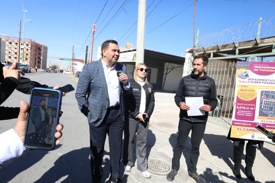 El Presidente Municipal, Cruz Pérez Cuéllar, entregó este día las obras de recarpeteo que se realizaron en la calle Rubén Posada Pompa, trabajos con los que se beneficia a los vecinos del sector y a miles de guiadores que circulan por ahí.