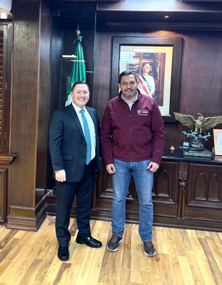 El presidente del Colegio de Notarios del Distrito Bravos, Ricardo Aguirre, hizo una visita de cortesía al alcalde Cruz Pérez Cuéllar, para ofrecer los servicios de los profesionistas del ramo en beneficio de la comunidad