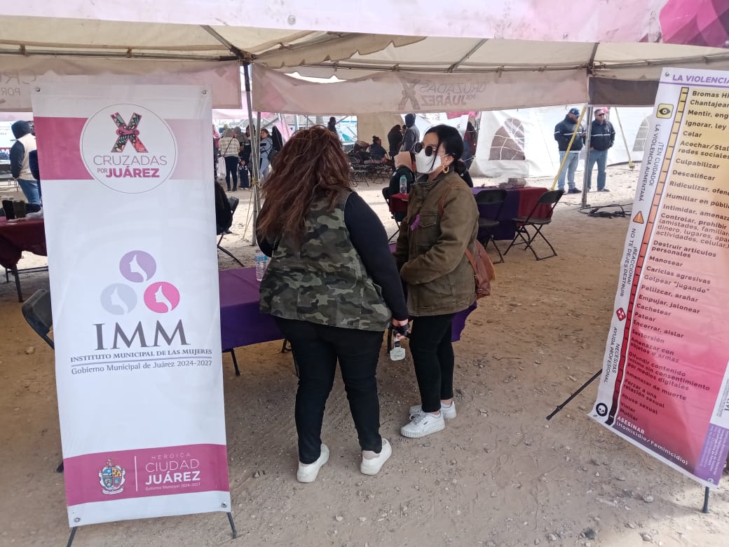 Como respuesta a la indicación de la Presidenta de México Claudia Sheinbaum Pardo, en el marco de las Cruzadas por Juárez “Atención a las causas, Ciudad Juárez por la paz”, implementada por la Secretaría de Gobernación, el Instituto Municipal de las Mujeres (IMM) se sumó a esta estrategia a través de la instalación de módulos informativos.