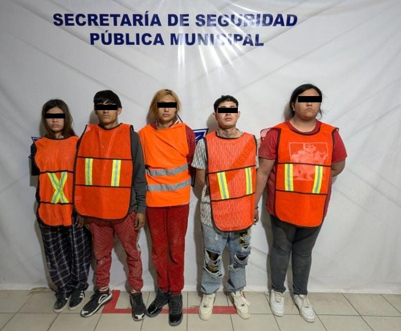 La Policía Municipal informó la detención de , Edwin Jared L. C. de 18 años, Jaime Jovanny R. M. de 22 años, Vianney Michelle G. A. de 19 años, Ashley Nohemí S. M. de 18 años, Jennifer R. G. de 18 años y dos adolescentes de 15 y 16 años, por su presunta responsabilidad en la comisión de delitos contra la ley federal de armas de fuego y explosivos, privación de la libertad, posesión de vehículos con reporte de robo y delitos contra la salud.Agentes de la estación de policía del Distrito Poniente, ayudaron a una adolescente que llegó al lugar para pedir ayuda, esta presentaba una herida de bala y mencionó que había escapado de un domicilio donde permanecía privada de su libertad junto a un hombre y una mujer, quienes estaban custodiados por personas armadas que les impedían salir.Ante ello se trasladaron a un domicilio ubicado en las calles Francisco Villa y Gabino Barreda, en la colonia División del Norte.En el lugar, rescataron a una mujer originaria de Ecuador y de un hombre proveniente del estado de Puebla, y procedieron a la detención de cinco sujetos y dos mujeres, mismos que fueron señalados por las víctimas de tenerlos secuestrados.Tras el arresto, aseguraron dos armas de fuego tipo pistola, una de calibre .40, con un cargador abastecido con 27 cartuchos útiles, y otra calibre.9 milímetros, con un cargador abastecido con 18 cartuchos útiles, ambos artefactos sin el número de serie.