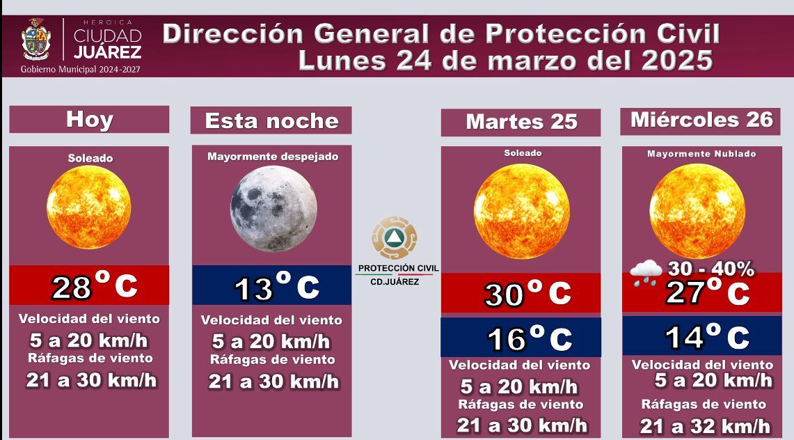 La Dirección General de Protección Civil emitió el pronóstico del clima para los días 24, 25 y 26 de marzo.