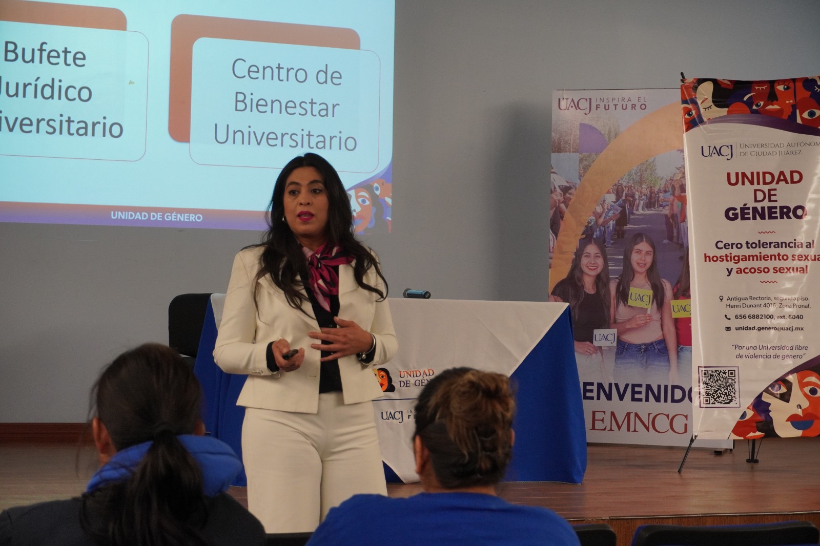 La Defensoría de los Derechos Universitarios (DDU) y la Unidad de Género de la Universidad Autónoma de Ciudad Juárez (UACJ) visitaron la Extensión Multidisciplinaria en Nuevo Casas Grandes (EMNCG) para ofrecer información sobre sus funciones, servicios y mecanismos de atención a la comunidad universitaria.