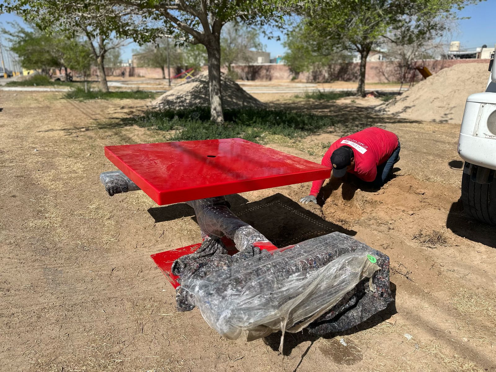 La Dirección General de Obras Públicas trabaja en la rehabilitación del parque Eduardo Barbachano, ubicado al suroriente de la ciudad en la colonia Hacienda de las Torres, el cual es intervenido al ser un proyecto ganador del Presupuesto Participativo.