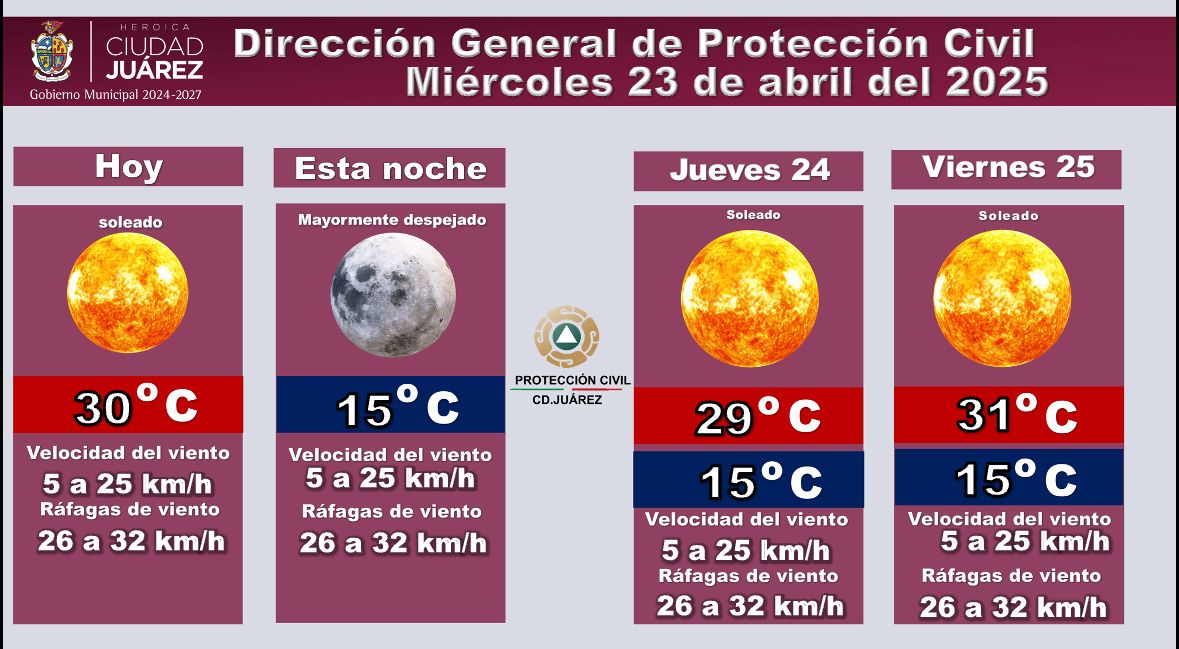 La Dirección General de Protección Civil informa sobre el pronóstico del clima para este miércoles 23 de abril y los días siguientes.