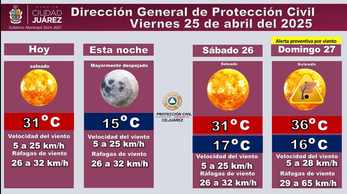 La Dirección General de Protección Civil emitió el pronóstico del clima correspondiente a este viernes 25 de abril.