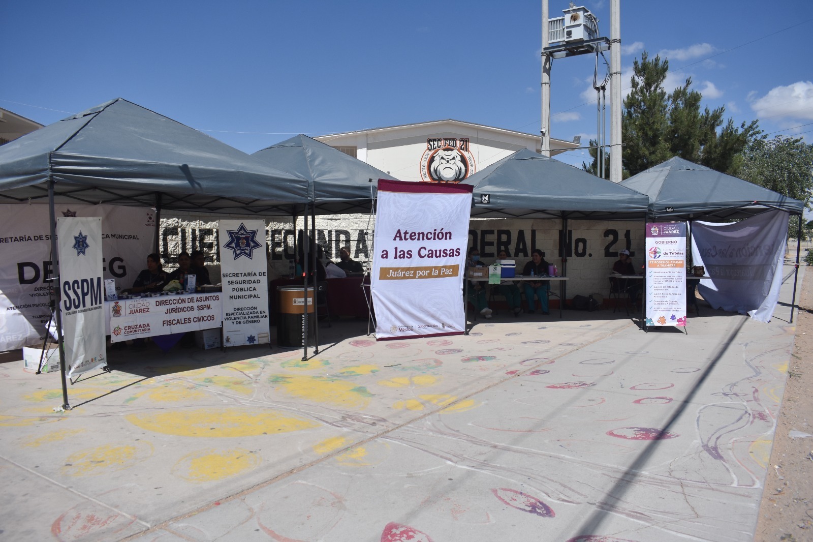 Acudió personal de la Dirección de Derechos Humanos, del Sistema para el Desarrollo Integral de la Familia del Municipio (DIF), del Instituto para la Cultura del Municipio de Juárez (IPACULT), de Desarrollo Urbano, de la Secretaría de Seguridad Pública Municipal (SSPM), de la Dirección de Limpia y la Junta Municipal de Reclutamiento.