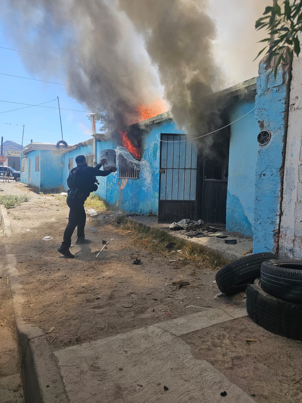 Elementos de la Secretaría de Seguridad Pública Municipal ayudaron a sofocar un incendio en una casa habitación ubicada en la colonia Independencia II.